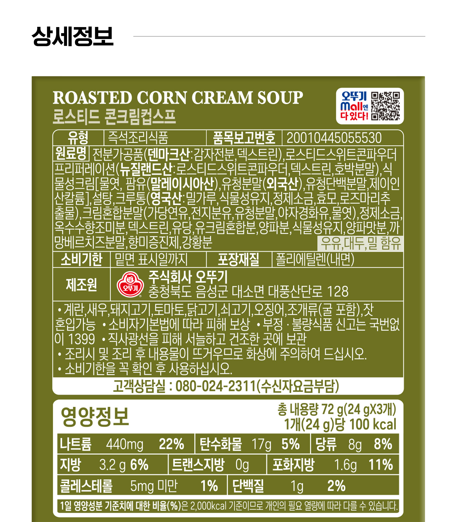 | 소비자 상담 관련 전화번호 | 오뚜기 고객상담실 : 080-024-2311(수신자 요금 부담) |