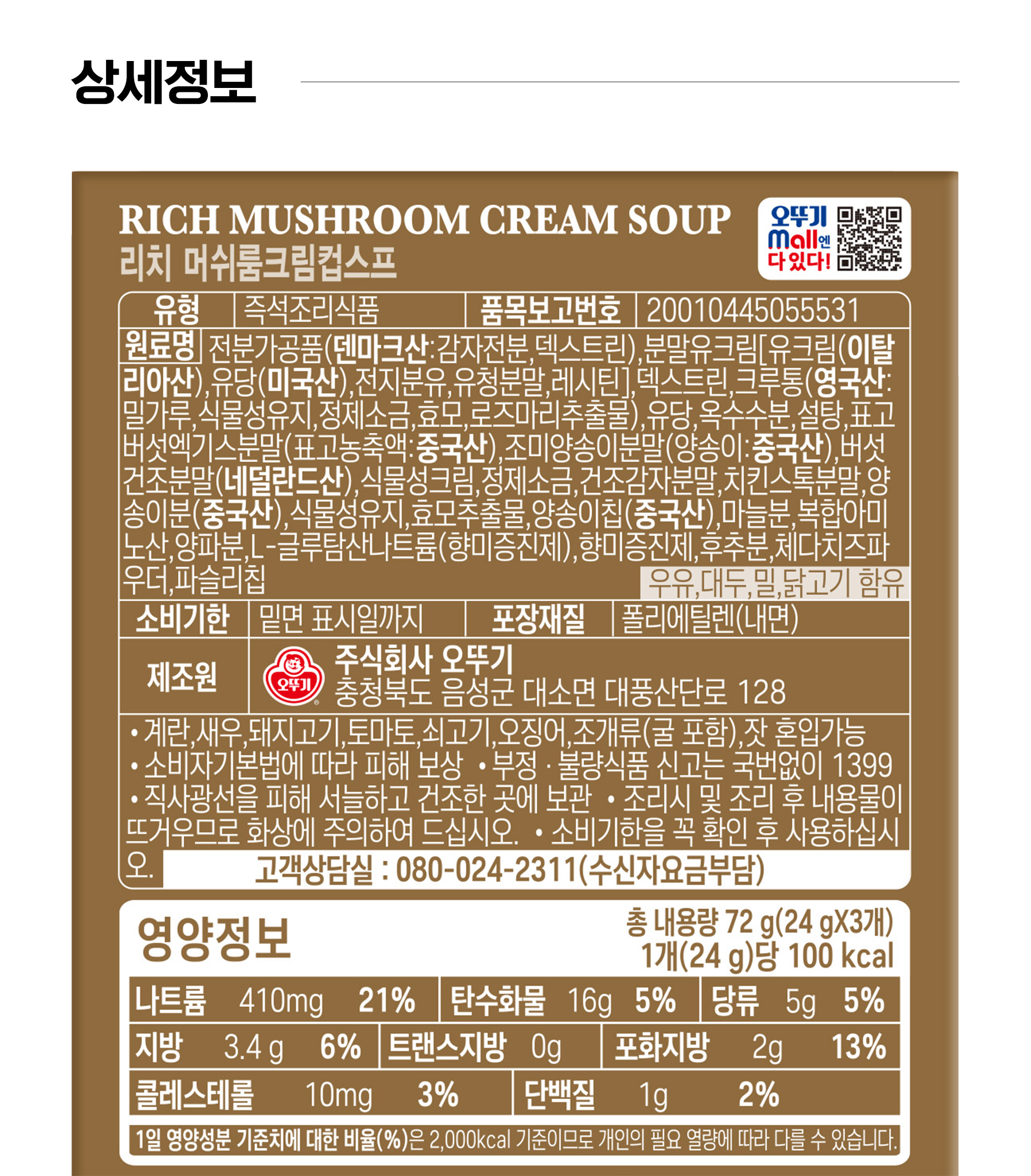 | 소비자 상담 관련 전화번호 | 오뚜기 고객상담실 : 080-024-2311(수신자 요금 부담) |