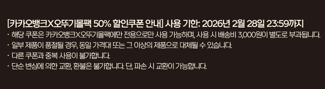 • 취소/반품으로 무료 배송 조건이 충족되지 못할 시 배송비가 추가로 부과될 수 있어요.