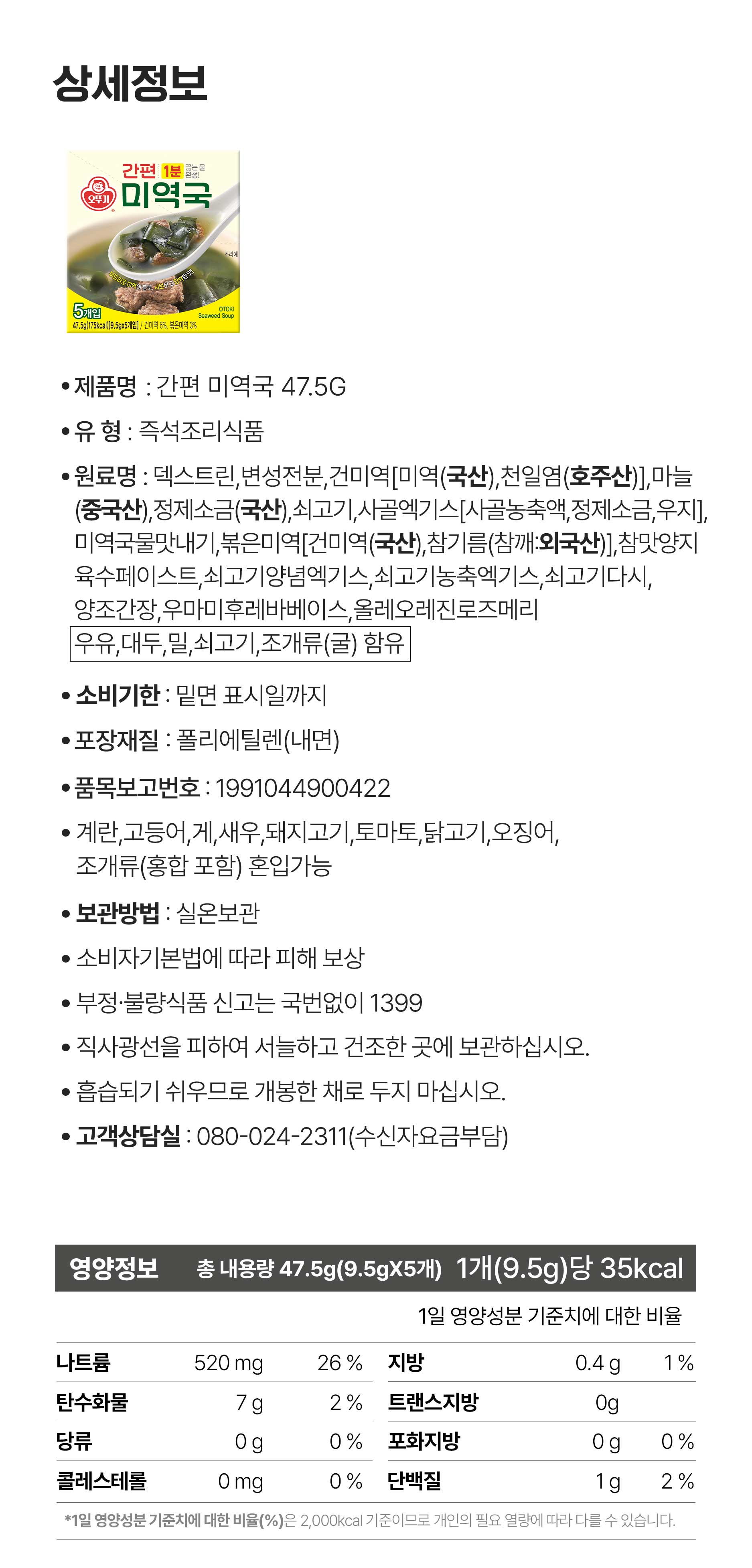 | 소비자 상담 관련 전화번호 | 오뚜기 고객상담실 : 080-024-2311(수신자 요금 부담) |