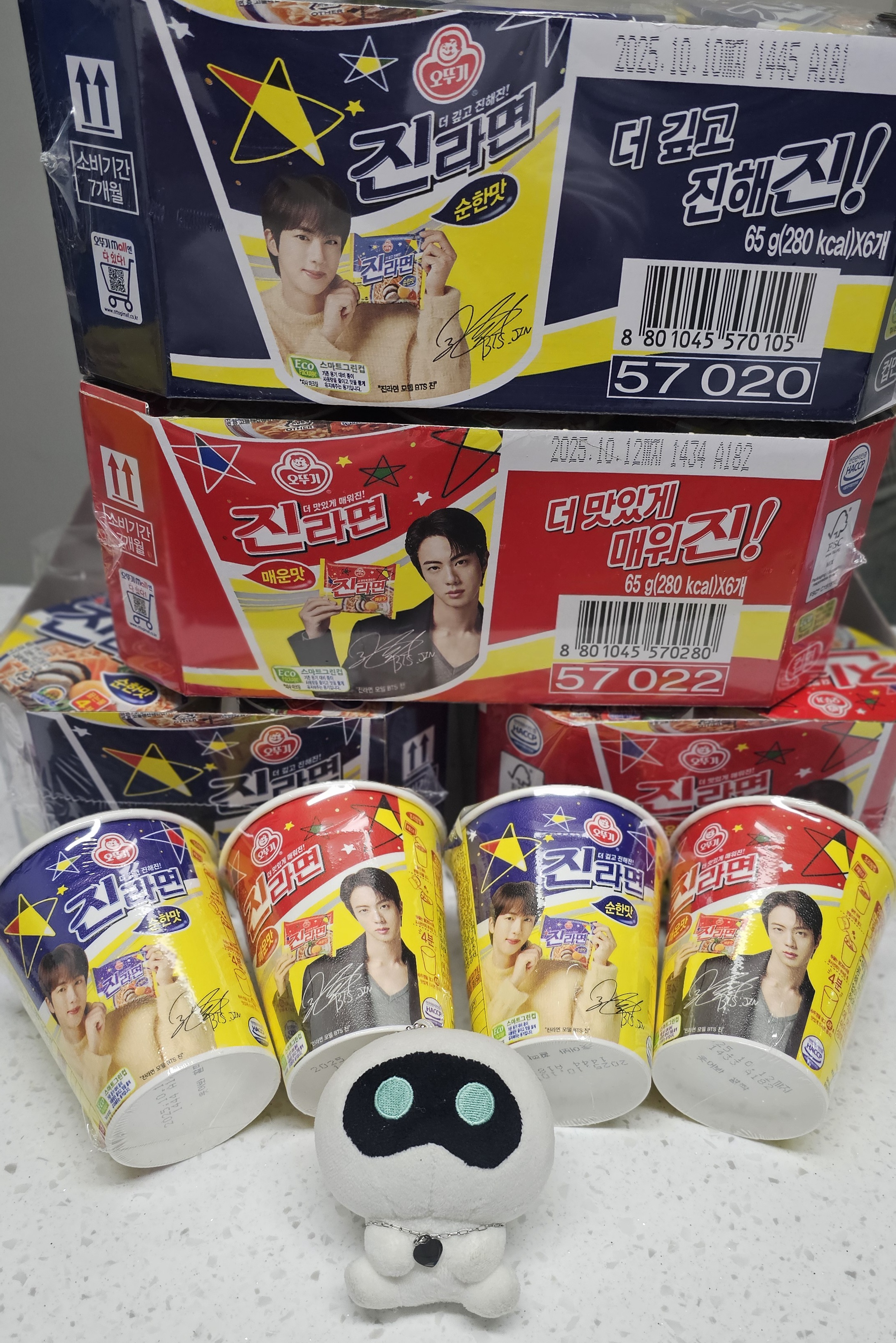 진라면 아이들도 같에 먹을 수 있게 순한맛과 매운맛이 다 나와서 좋아요. 점자로 표기해된 부분도 감동이네요. 컵라면 바닥의 기분좋은 멘트도 항상 감사합니다