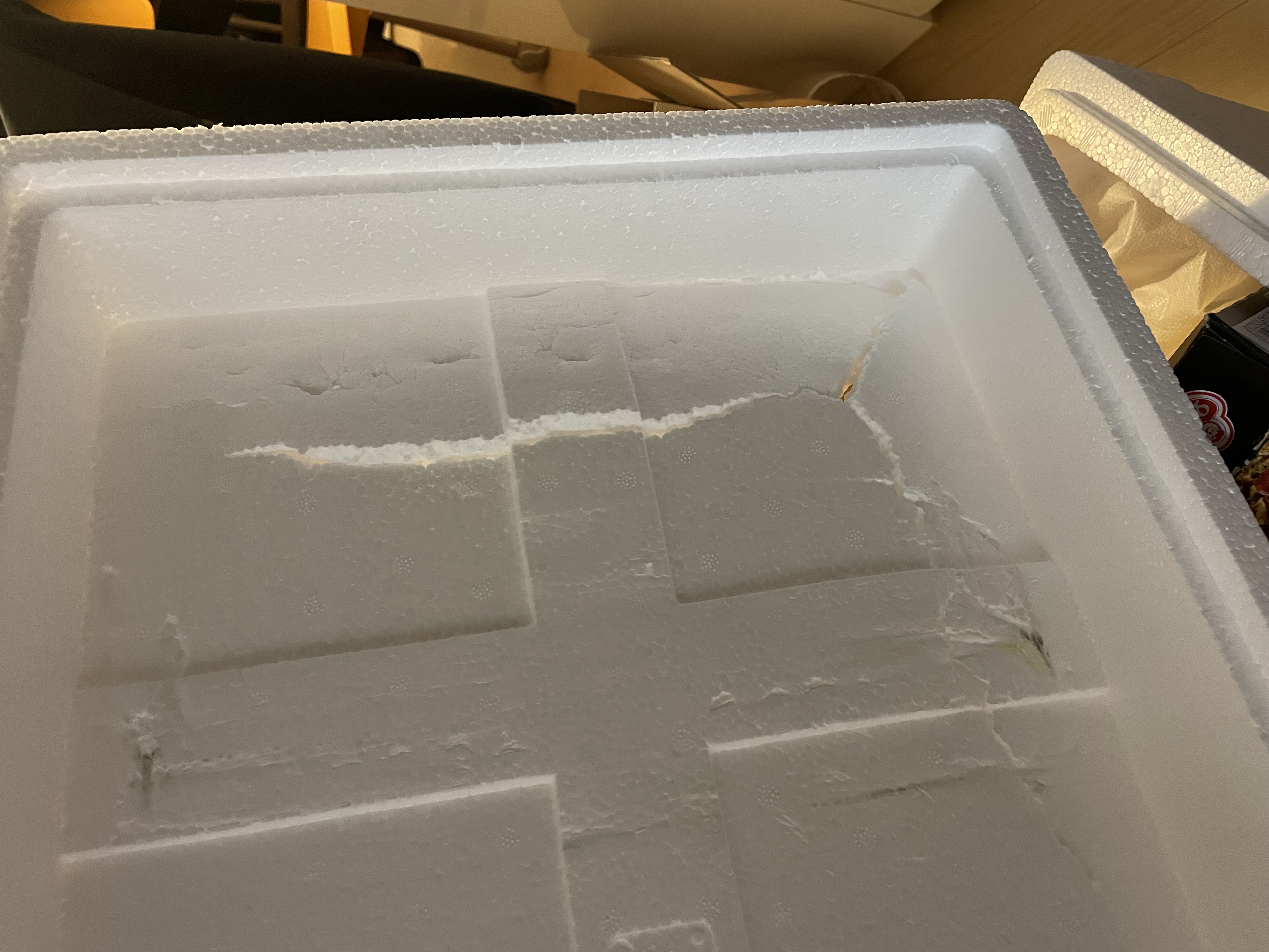 파손된 재활용 스티로폼 박스를 사용하여 모든 제품이 해동된 상태로 도착하였습니다. 오뚜기같은 대형 식품 회사에 어울리지 않는 택배 포장입니다. 정말 많이 아쉽습니다. 이에 대한 해명을 요청합니다.