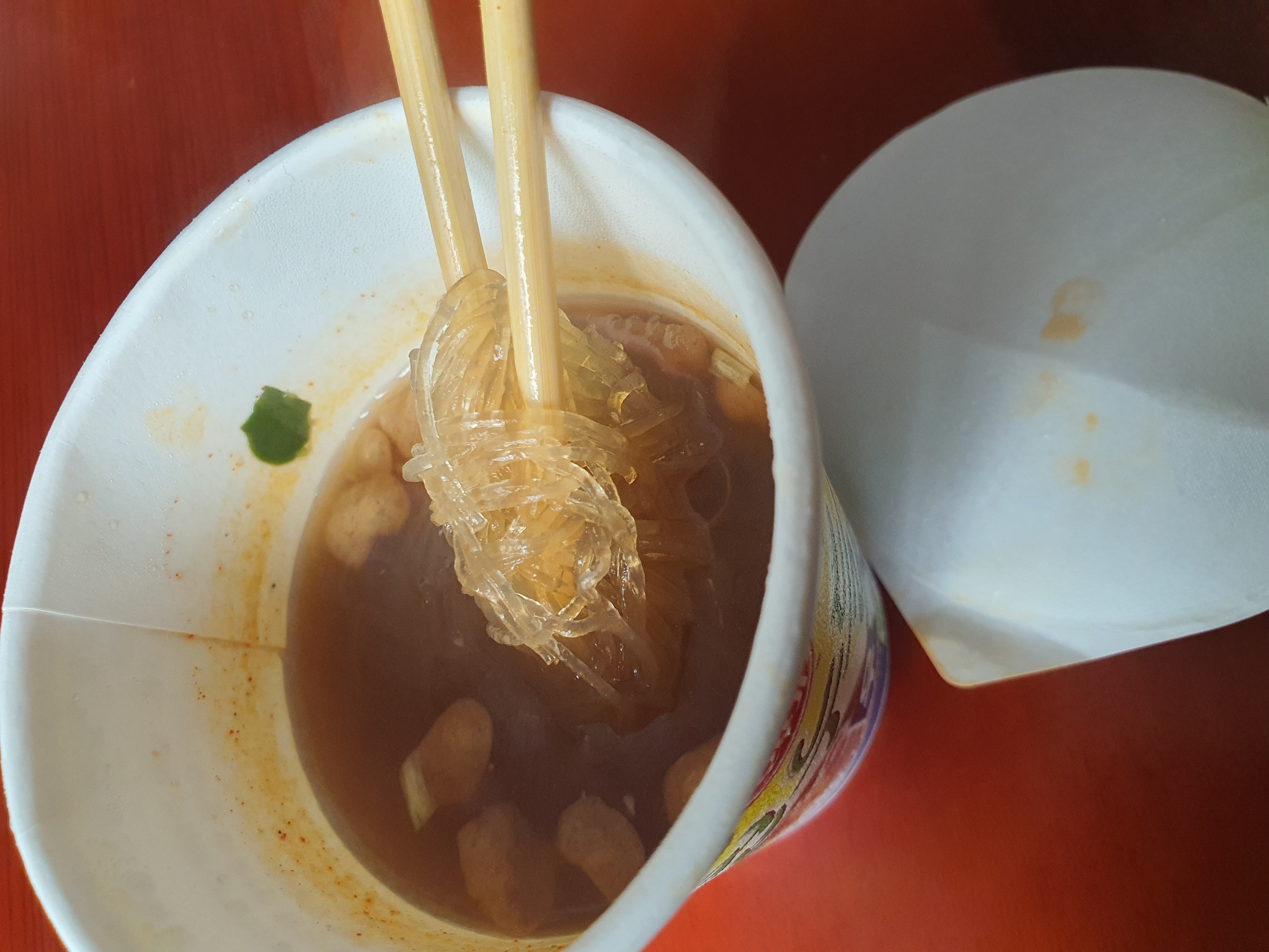 9살 딸과 함께 먹고 있어요. 잡채면 같지만 식감이 달라요.딸애가 그냥 라면보다 이 누들을 너무 좋아하네요.