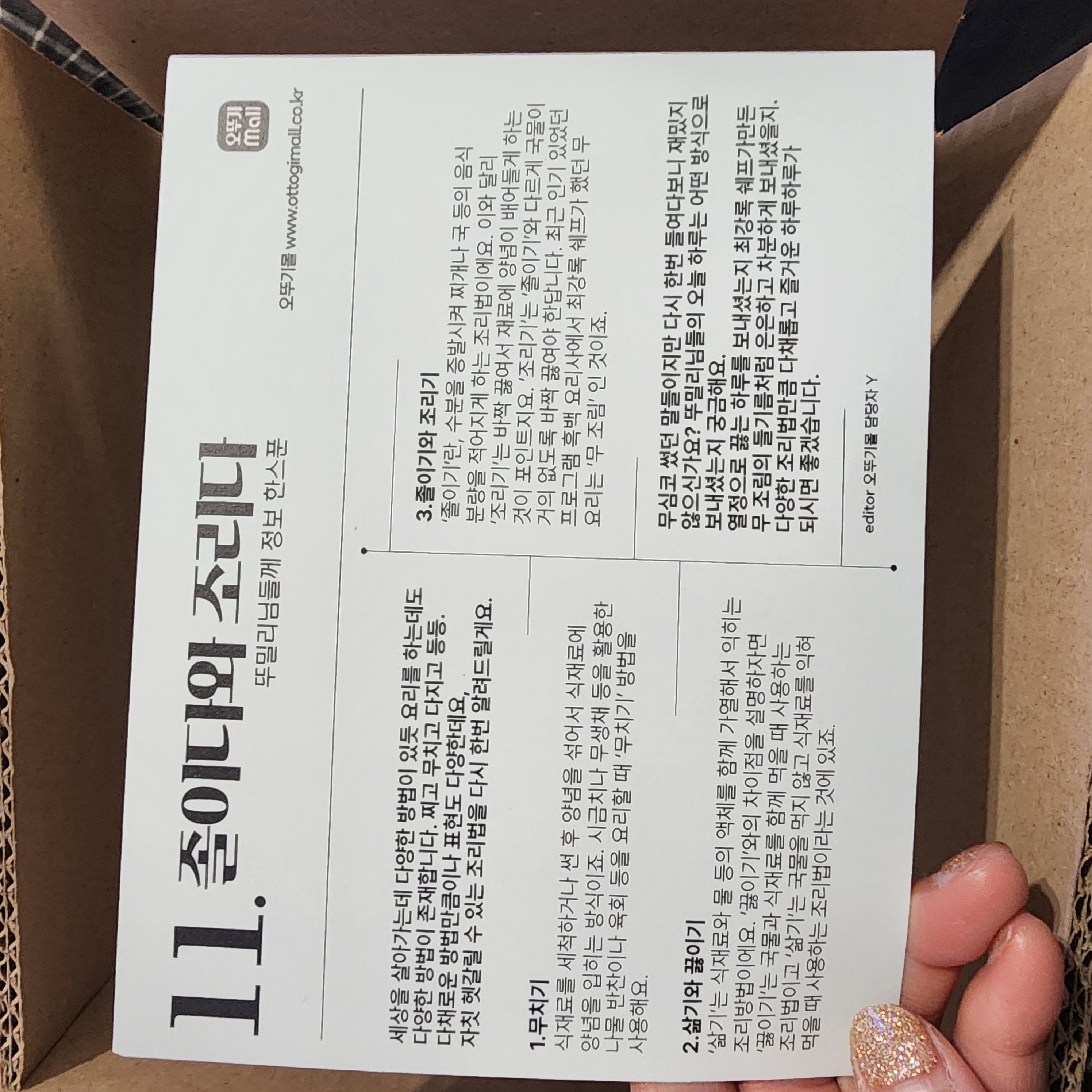 현재 구매해주신 고객님들께 제품 포장 시 "오뚜기몰레터" 가 함께 발송되고 있습니다.