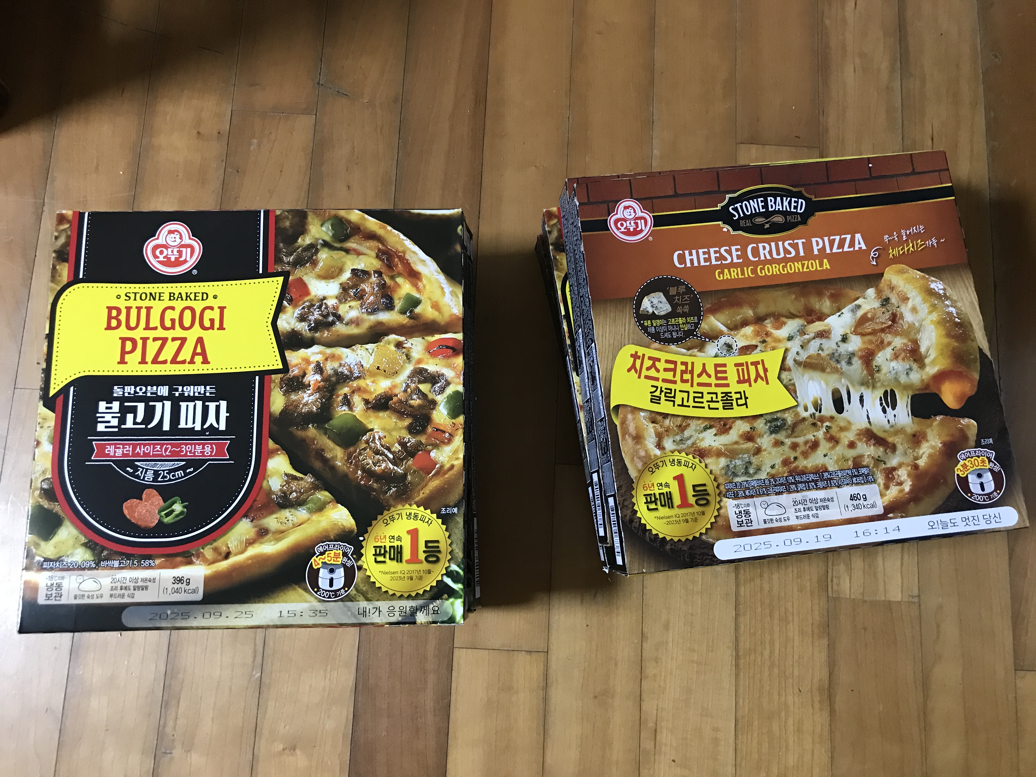 불고기 피자도 역시 갓뚜기네요. 타사 제품들이 재료 아끼려고 하는 것이 보이는데 오뚜기 피자는 재료를 타사에 비해서 더 넣은 것이 눈에 보입니다. 불고기 양념 향과 함께 맛도 좋습니다.