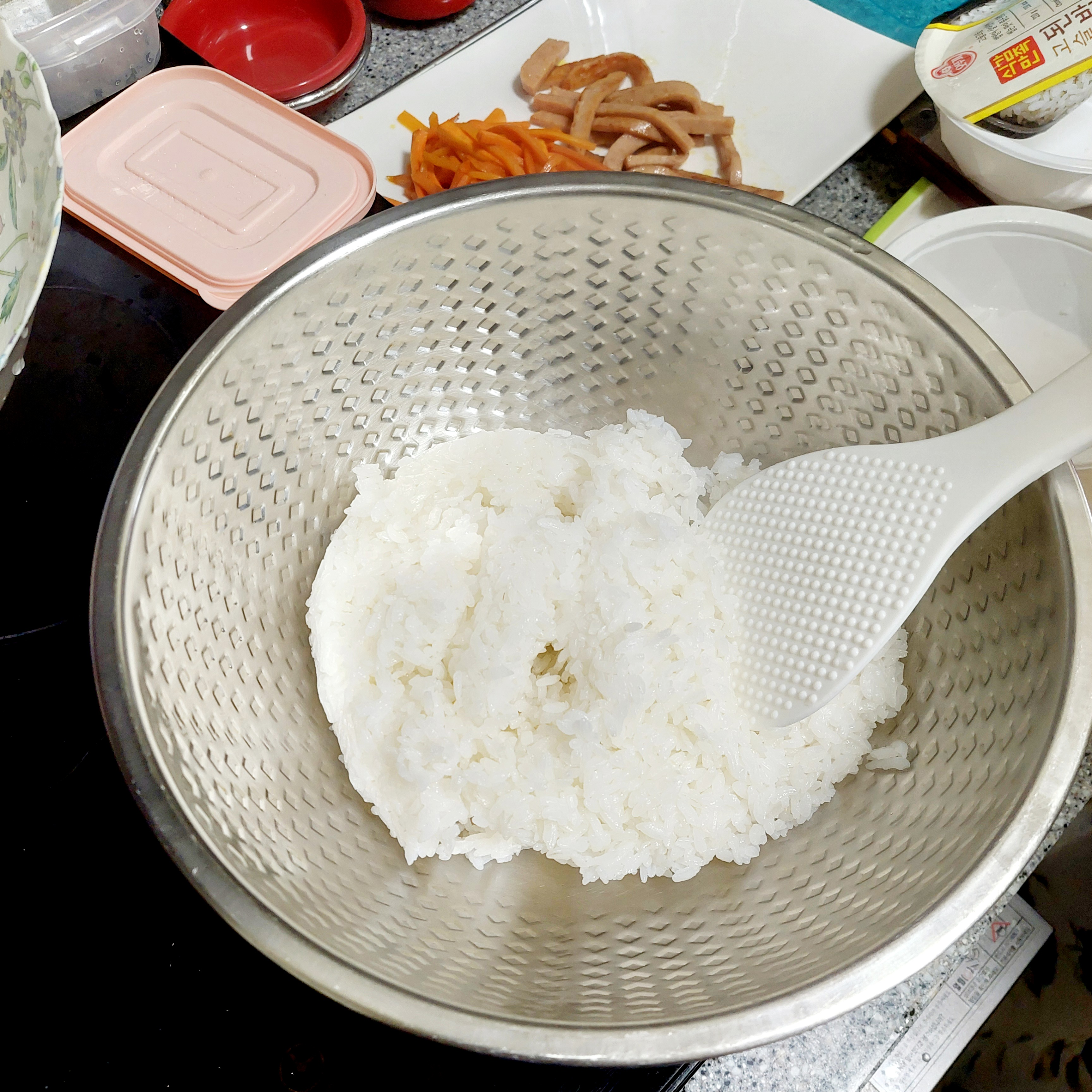 꼬마김밥 만드는데 아주 적절한 밥의 물 양이었네요~