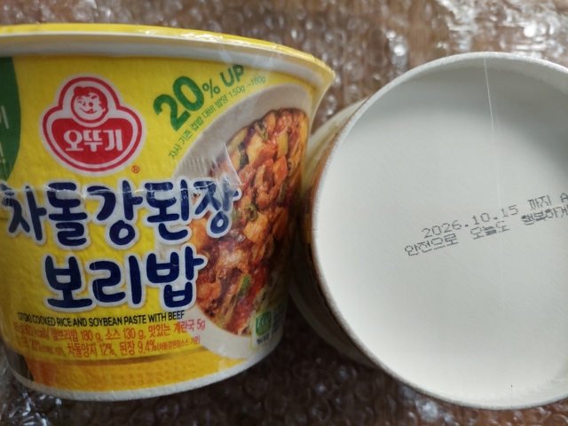 컵밥 찌그러진 것 없이 잘 받았습니다. 소비기한 2026.10.15일까지 입니다.
