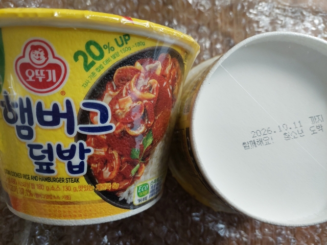 컵밥 찌그러진 것 없이 잘 받았습니다. 소비기한 2026.10.11일까지 입니다.