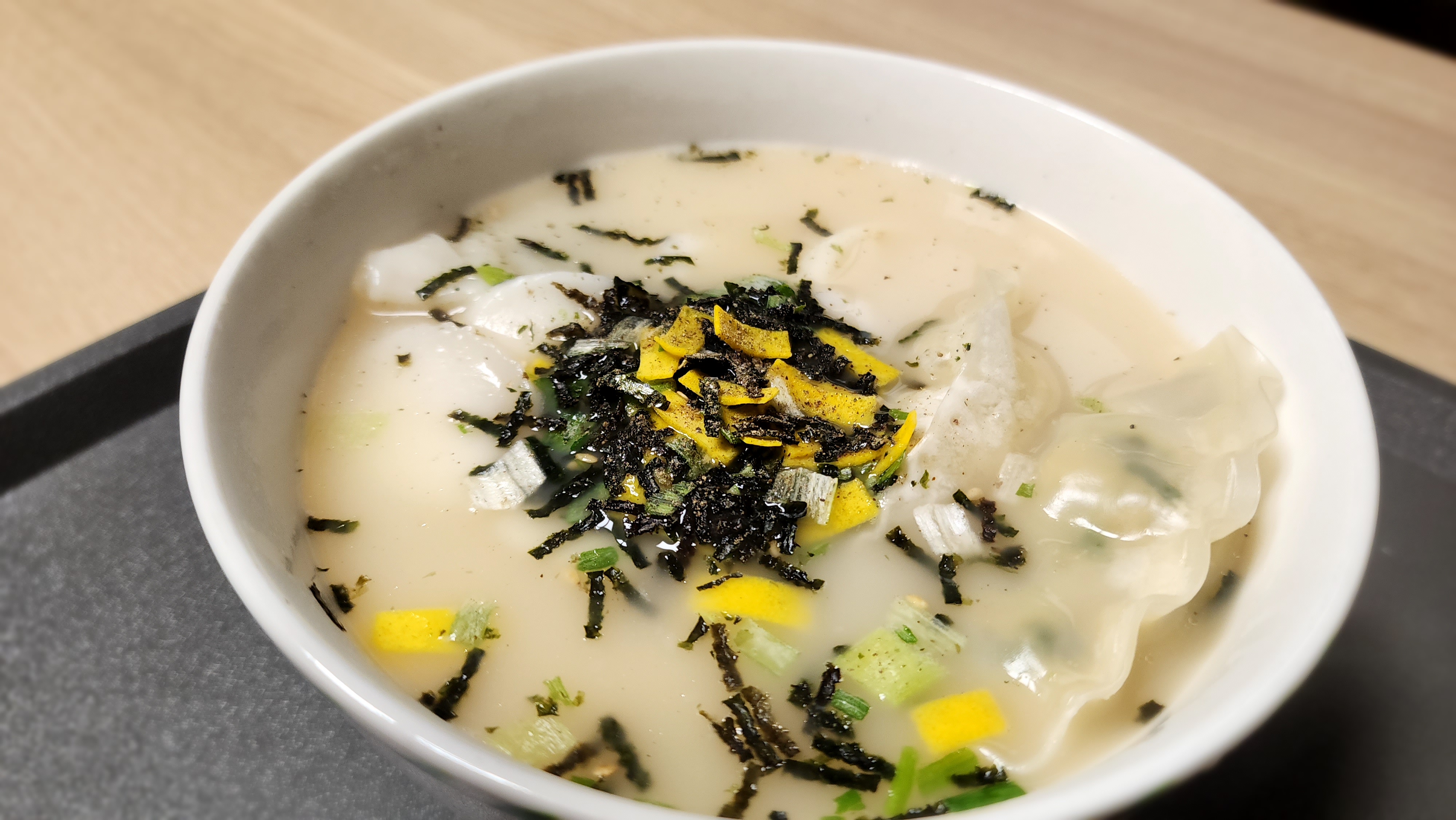 냉동만두 전자렌지에 돌리고 넣으면 떡만두국이 되고 김가루도 추가하고 밥말아 먹으면 딱입니다